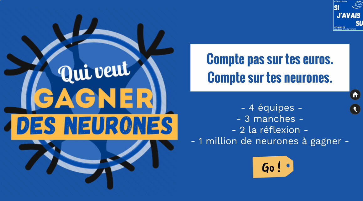 Et si le jeu venait dans votre classe ? A travers un format aussi ludique qu'original, vous apprendrez des notions de neurosciences diverses et variées à travers 4 manches drôles et scientifiques.La curiosité des jeunes sera mise à contribution et récompensée avec de nouveaux neurones !Cet atelier aborde des notions de : neurosciences, prévention, techniques d'apprentissage